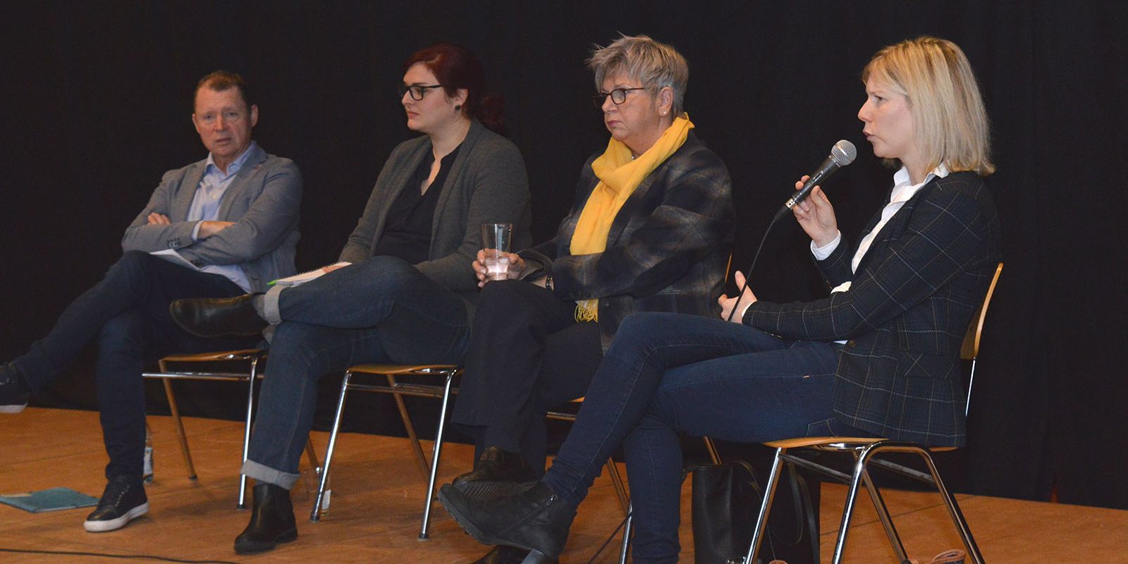 Als Vertreterin der CDU-Landtagsfraktion hat die Landtagsabgeordnete und Lehrerin Jenny Groß mit Schülerinnen und Schülern des Stefan-George-Gymnasium in Bingen auf einer Podiumsdiskussion Standpunkte ausgetauscht. Zusammen mit Pia Schellhammer (Bündnis 90/Die Grünen), Helga Lerch (FDP) und Michael Hüttner (SPD), die Haltung zu den Themen Öffentlicher Nahverkehr (ÖPNV), Wahlalterabsenkung, Flüchtlingspolitik, Klimabewegung „Friday for future“ und Bildungschancen klargemacht. Es gab deutlich unterschiedliche Ansichten, doch eines war für alle Vertreter der demokratischen Parteien klar: Menschen in Not, die Asyl suchen, bleiben in Deutschland willkommen.