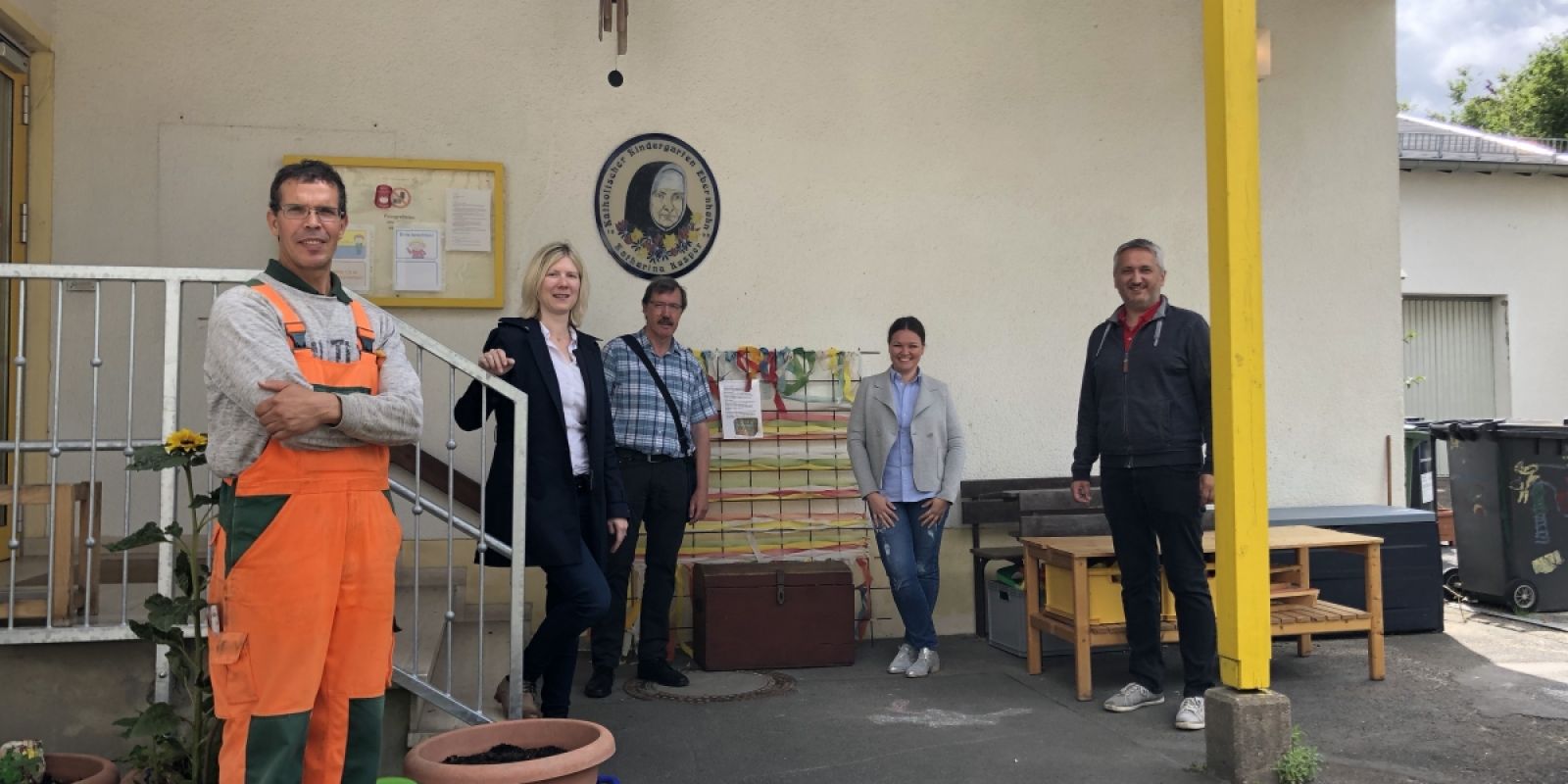 Bei einem Ortstermin informierten Ortsbürgermeister Thomas Schenkelberg und die Kita-Koordinatorin der Pfarrei St. Bonifatius, Anna Carina Weber, die stellvertretende Vorsitzende der CDU-Kreistagsfraktion, Jenny Groß MdL, und den CDU-Obmann im Jugendhilfeausschuss, Karl-Heinz Boll, über die aktuelle bauliche Unterbringung der Kath. Kindertagesstätte Katharina Kasper Ebernhahn.