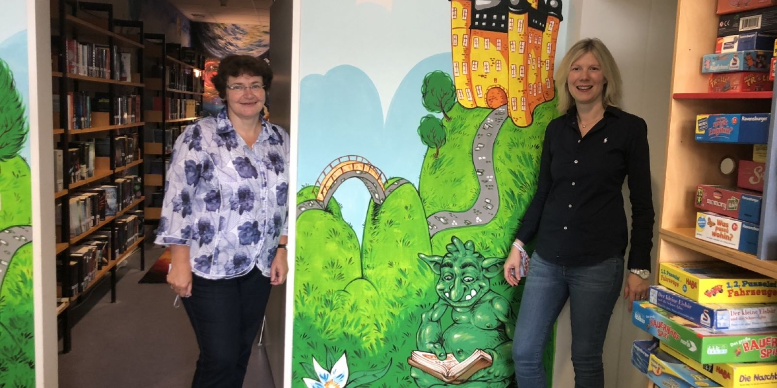 Auch über die Onleihe im Netz, die Zukunft der Bibliotheken und deren Nutzung tauschten sich die beiden Damen aus. Als Mitglied im Ausschuss für Wissenschaft, Weiterbildung und Kultur war Jenny Gro es besonders wichtig vor Ort zu erfahren, wie die Förderprogramme des Landes angenommen werden und wie die Begebenheiten der Bibliothek sich geändert haben. So wurde von Dipl. Bibl. Klaudia Zude berichtet, dass sie bereits im Austausch mit der Stadt über einen neuen Standort der Bibliothek im Gespräch sind und sich darüber freuen, dass sie hier eine so gute Utnerstützung erfahren. Auch wurde der neue Lieferservice von Büchern in Zeiten der Schließung durch Corona gesprochen, dies habe sich bewährt und die Kuriere wie die Leser haben sich gefreut, dass sie auch während der Pandemie neuen Lesestoff erhalten.