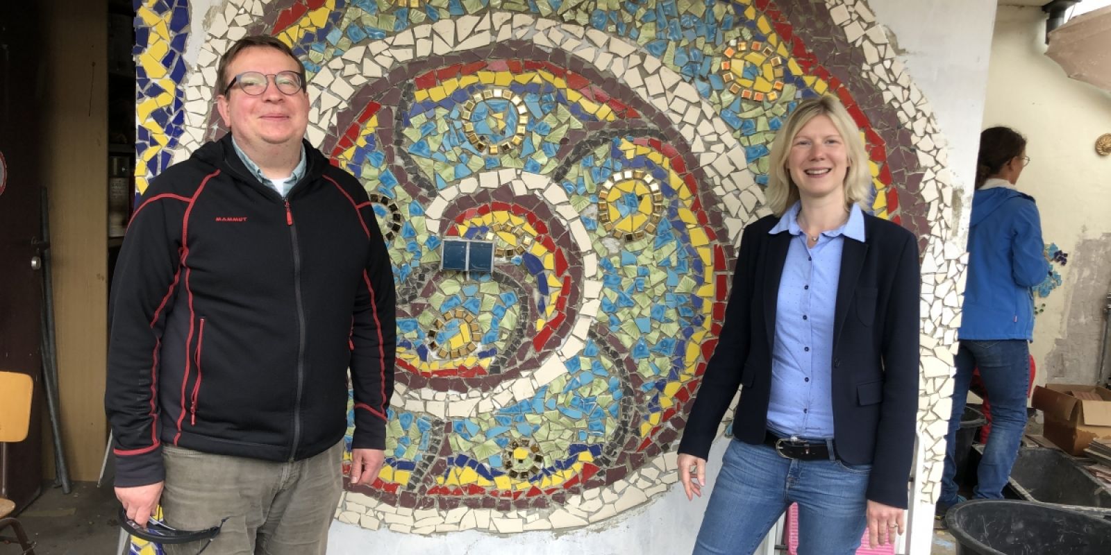 Die jungen Menschen interessieren sich für Zukunftsthemen, ihre Berufe, weniger Politik, aber dennoch gibt es gesellschaftsrelevante Themen, die manch Jungendlichen bewegen. Am Ende schauten sich die Abgeordnete und der Leiter gemeinsam die neu entstandenen Kunstwerke im Außenbereich an und lobten alle, die dort binnen weniger Tage für ein gelingendes Mosaik sorgen und gerne auf eine Pause verzichten, denn sie haben so viel Spaß beim Werkeln. „Ihr macht das toll, viel Freude wünsche ich euch“, beendete Jenny Groß ihren Besuch und dankte für den konstruktiven und kurzweiligen Austausch.