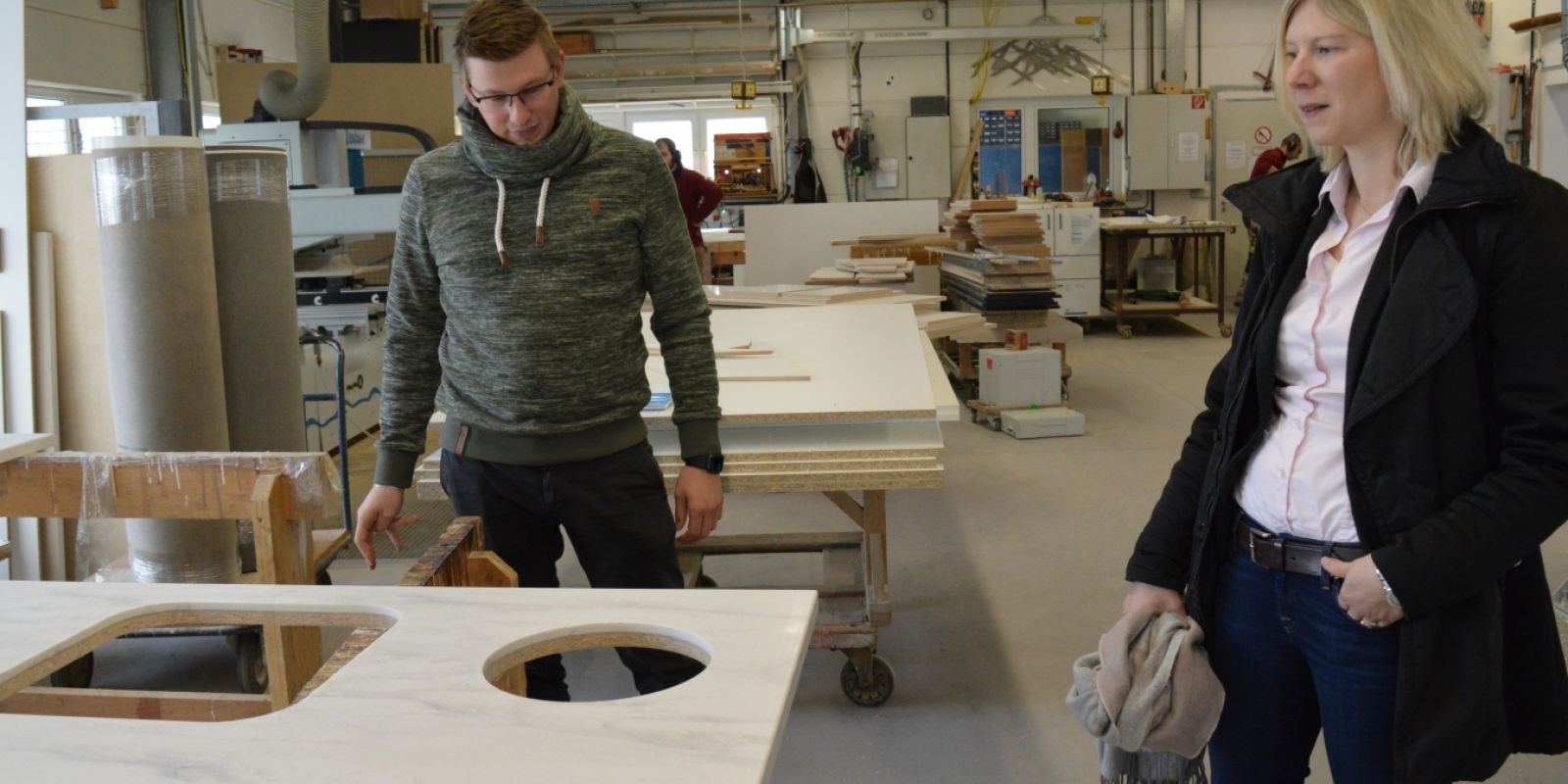 Jenny Groß bedankte sich bei Dominic Hallier mit den Worten: „Ein starkes Unternehmen mit einer zukunftsweisenden Entwicklung. Weiter so, denn Handwerk wird überall benötigt und wer wie Copado Innovation mit Tradition verbindet, hat gute Zeiten vor sich.“
