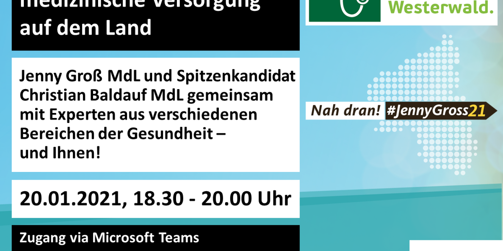 Montabaur. Wer krank ist braucht einen Arzt, schnell und in der Nähe. Darum ist die ambulante und stationäre medizinische Versorgung ein elementarer Bestandteil einer stabilen Infrastruktur. Diese auch in der Zukunft zu erhalten und ländliche Regionen nicht abzuhängen ist das Gebot der Stunde. „Nicht erst seit der andauernden Pandemie ist uns bewusst, dass wir in der medizinischen Versorgung handeln müssen, das gilt sowohl für das Flächenland Rheinland-Pfalz als auch für die Region Westerwald,“ weiß die Landtagsabgeordnete Jenny Groß und der Spitzenkandidat Christian Baldauf (CDU). Darum lädt die Politikerin im digitalen Format zu einer Expertenrunde zum Thema „Ambulante und stationäre medizinische Versorgung auf dem Land“ ein. Gemeinsam mit dem Vorsitzenden des Gesundheitsausschusses im Deutschen Bundestag Erwin Rüddel (CDU), dem Allgemeinmediziner Dr. Klaus Fischer (Ransbach-Baumbach), dem Apotheker Michael Geißler (Eisbachtal- und Amtsapotheke, Nentershausen und Wallmerod) sowie dem Spitzenkandidat der CDU Rheinland-Pfalz, Christian Baldauf und weiteren Vertreten aus dem Gesundheitsbereich will Jenny Groß am Mittwoch, 20. Januar 2021 um 18.30 Uhr bis 20.00 Uhr Ideen entwickeln und diskutieren, wie medizinische Experten und politische Entscheidungsträger zukunftsfähige Strukturen für die Region schaffen können. Diskutieren Sie mit und melden Sie sich an unter