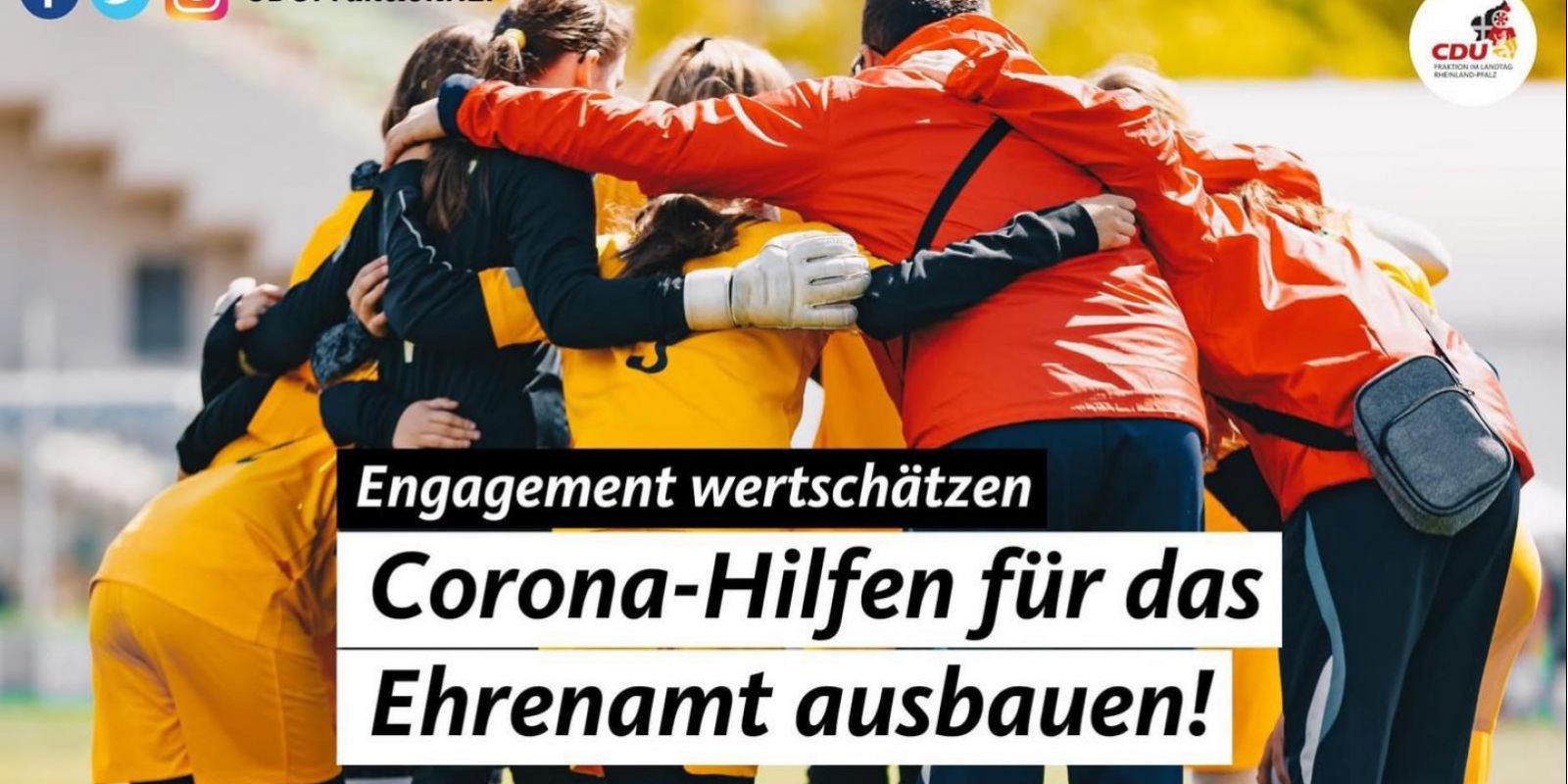 Die Corona-Pandemie stellt unsere Ehrenamtlichen und Vereine vor völlig neue Herausforderungen. Das Vereinsleben ist zum Erliegen gekommen – keine Fußballtrainings, keine Chorproben und keine Übungen der Freiwilligen Feuerwehren können stattfinden. Vereine verlieren Mitglieder – sie kämpfen um ihre Existenz. Es entstehen kreative Lösungen, die an manchen Stellen das Miteinander auf eine neue Art und Weise wieder möglich machen. In diesen schwierigen Zeiten ist es wichtig, das Ehrenamt, die neuen Wege des Ehrenamts, zu fördern und durch finanzielle Unterstützung zu erhalten.