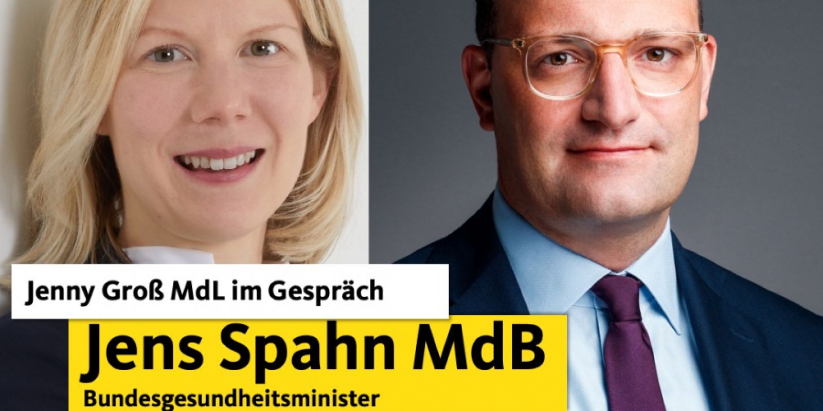 Den digitale Besuch von Jens Spahn MdB am kommenden Freitag, 12.2. um 18.00 Uhr erfreut die Landtagsabgeordnete Jenny Groß sehr. „Seit knapp einem Jahr ist er es, der die Corona Pandemie mit seinem Ministerium federführend begleitet und tagtäglich mit der Bundesregierung dafür wirbt, dass die Maßnahmen eingehalten werden und wir gemeinschaftlich aus dieser pandemischen Lage kommen. Dass er sich Zeit nimmt, um mit uns allen in den Dialog zu treten und Antworten zu geben, ist in Zeiten wie diesen hilfreich und richtig,“ sagt Jenny Groß MdL. Am morgigen Mittwoch sprechen Bund und Länder auch wieder darüber, ob es zu Lockerungen kommt oder ob die verschärften Coronaregeln weiterhin gelten. Auch mit Blick auf das derzeitige Impfgeschehen und die Frage nach weiteren Impfstoffen wird es ein guter Austausch werden, zu dem die Landtagsabgeordnete Groß einlädt. Anmeldungen oder auch Fragen können im Vorfeld an Diese E-Mail-Adresse ist vor Spambots geschützt! Zur Anzeige muss JavaScript eingeschaltet sein. gesendet werden.