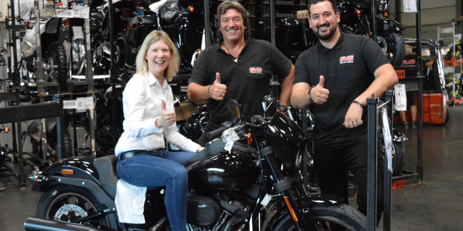 Einen Ausflug in eine andere Welt mit großem Potential dies zu mögen, erlebte die Landtagsabgeordnete Jenny Groß mit einem Besuch zu einer der größten, im Westerwald angesiedelten, Speditionen. SKS-World in Mogendorf ist europaweit tätig, zum Kerngeschäft zählt die Beförderung von Motorrädern, vorzugsweise der Firmen Harley Davidson und KTM. Zur Unternehmensgruppe zählen zusätzlich noch ein Logistik-Park und ein Reiseveranstalter, natürlich für Motorradreisen. Selbstverständlich durfte bei solch einem Termin das Probesitzen auf einer Harley, zumal es die Premiere war, nicht fehlen.
