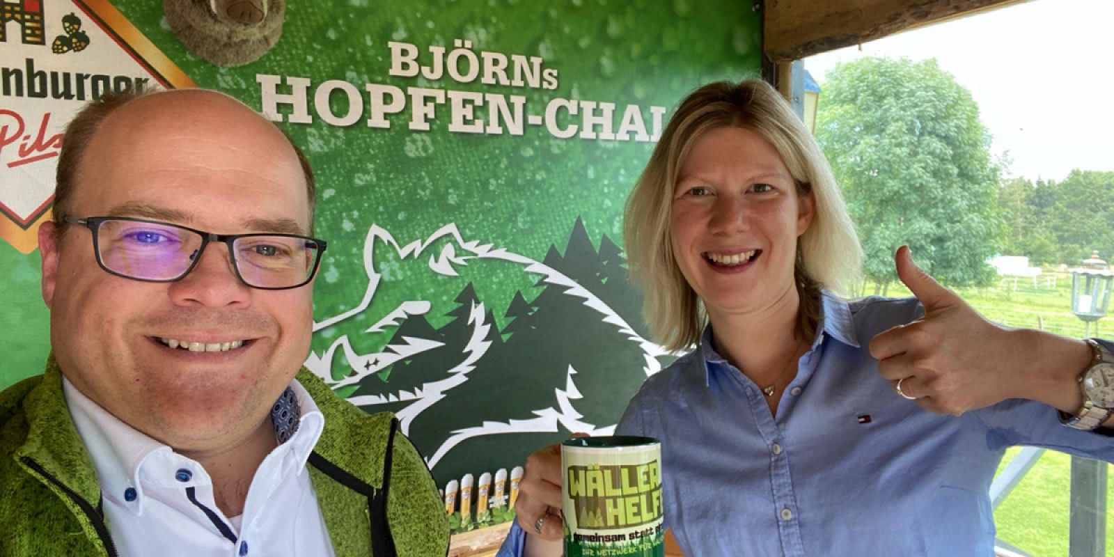 Heute Nachmittag wieder einmal ein tolles Gespräch mit Wäller Helfen e.V. und deren Vorsitzenden Björn Flick geführt, natürlich auf seiner Hopfenterrasse bzw. seinem Chalet. Themen gab es genug, von den zahlreichen Anfragen an ihn und den Verein, das Netzwerk Wäller helfen, die Baumpflanzaktion oder die enormen Hilfsleistungen vieler Ehrenamtlichen im Hochwassergebiet. Es ist eine nicht zu beziffernde Leistung, die alle bei Wäller Helfen e.V. freiwillig erbringen zum Wohle von allen, die sich hilfesuchend an sie wenden. Gewiss würde dies auch der Raiffeisen-Gesellschaft gefallen, denn das Motto ist auch hier: Was einer allein nicht schafft, das schaffen viele. Ein toller und mehr als wichtiger Verein bei uns im Westerwald, der im Frühjahr auch sein 1-jähriges Bestehen hatte.