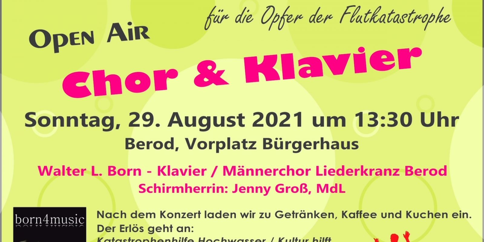 Der Männerchor Berod veranstaltet am Sonntag, den 29.August 2021 um 13:30 Uhr auf dem Vorplatz des Bürgerhauses ein Open-Air-Konzert.