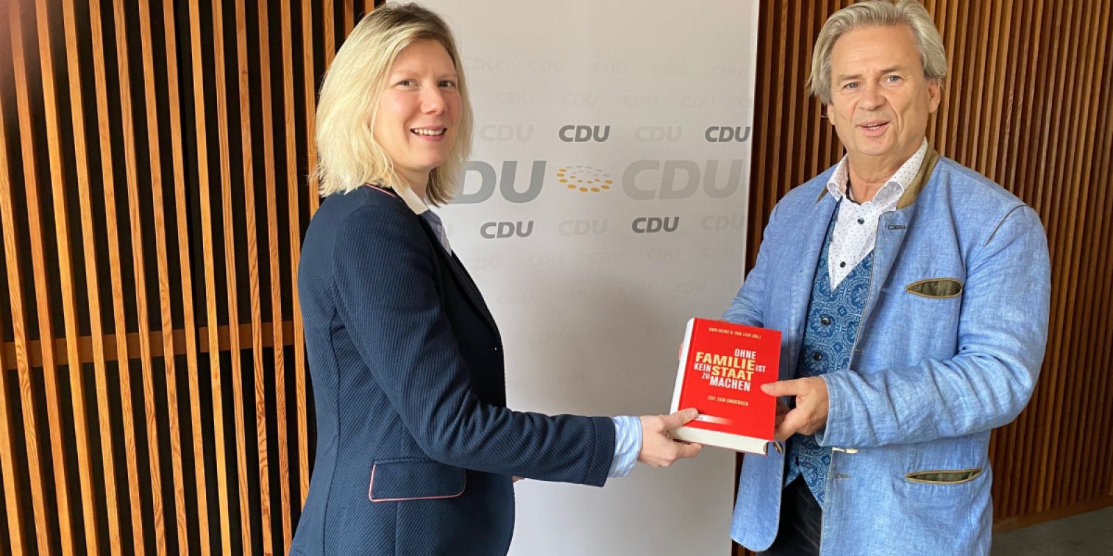 Er freute sich, ihr in Vertretung für die Mitglieder des Ausschusses das Buchpräsent „Ohne Familie ist kein Staat zu machen“ zu überreichen, welches von unterschiedlichen Persönlichkeiten des öffentlichen Lebens in einzelnen Aufsätzen verfasst wurde. Das Buch ist ein Impulsgeber, Debattenband und Nachschlagewerk, weswegen es den Titel Kompendium trägt. Den Autorinnen und Autoren geht es darum, Familie stärker in den Fokus von Politik zu rücken und deren Herausforderungen samt denkbarer Lösungsansätze aufzuzeigen.