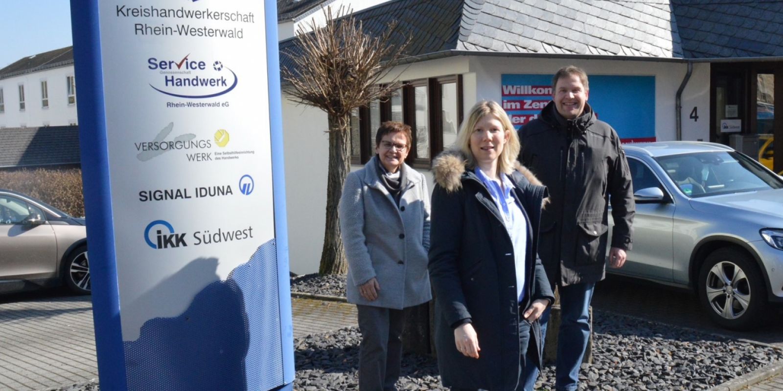 Den Besuch der CDU-Landtagsabgeordneten Jenny Groß bei der Kreishandwerkerschaft Rhein-Westerwald in Montabaur begrüßten die beiden Geschäftsführer Elisabeth Schubert und Michael Braun sehr: Sie hatten bei der Politikerin ein offenes Ohr gefunden, um sich über die Situation im Handwerk auszutauschen. Denn trotz oft florierender Auftragslage steht das Handwerk vor großen Herausforderungen.