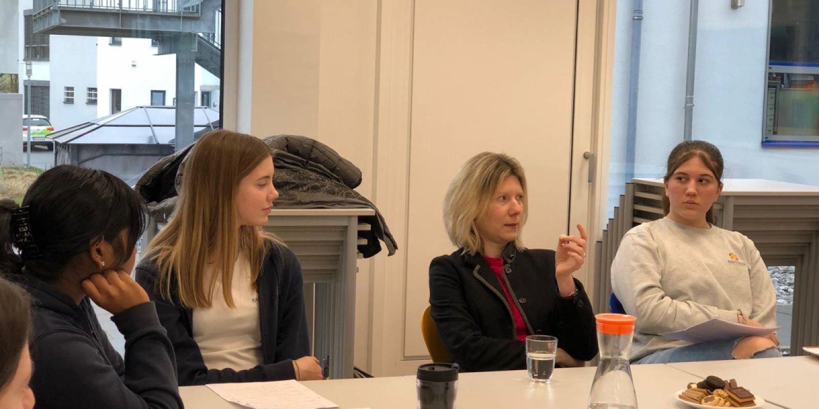 … dann kommt die Westerwälder CDU Landtagsabgeordnete Jenny Groß sehr gerne. Jüngst war sie als Teilnehmerin eines neuen Formates im Leistungs-und Grundkurs der Oberstufe des Raiffeisen Campus in Dernbach zu Besuch.