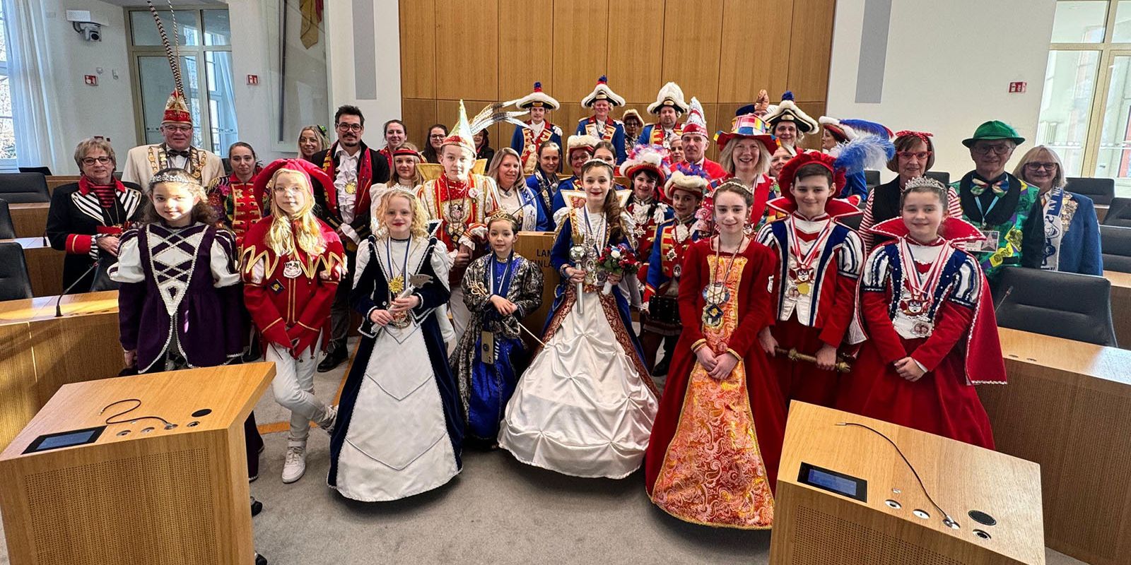 Zum krönenden Abschluss übernahmen die Kinderprinzenpaare symbolisch das Regiment im Landesparlament und feierten ausgelassen in den ehrwürdigen Räumen des Landtags.