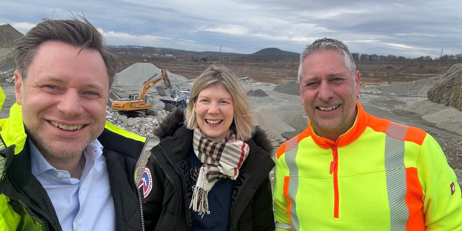 Die Landtagsabgeordnete Jenny Groß (CDU) besuchte kürzlich die Grube Stemmer, einen der Standorte des Unternehmens Blasius Schuster. Begleitet wurde sie von Geschäftsführer Daniel Imhäuser, der ihr einen umfassenden Einblick in die Arbeit und die Zukunftspläne des Unternehmens gab sowie über die Entwicklung der Branche sprach.