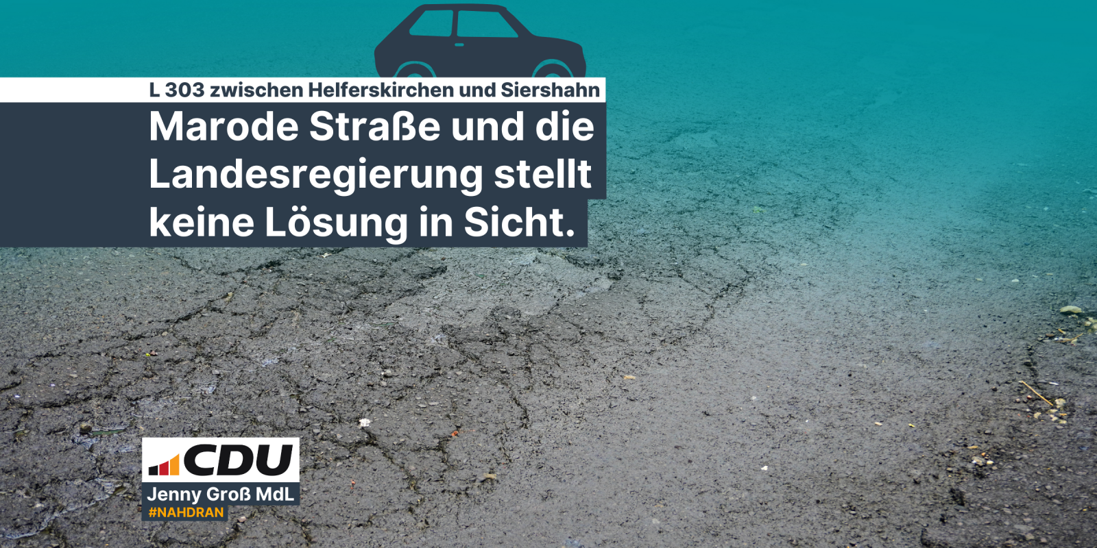Helferskirchen/Siershahn. Die CDU-Landtagsabgeordnete Jennifer Groß kritisiert die Untätigkeit der Landesregierung bei der dringend notwendigen Sanierung der Landesstraße L 303 zwischen Helferskirchen und Siershahn. Wie aus der Antwort auf ihre Kleine Anfrage hervorgeht, wurde bereits bei der letzten Zustandserfassung 2022 festgestellt, dass der Fahrbahnzustand in großen Teilen „nicht mehr befriedigend“ ist. Dennoch ist die L 303 weder im Investitionsplan 2024–2028 noch im aktuellen Landesstraßenbauprogramm berücksichtigt.