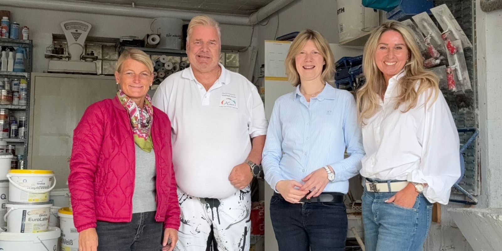 Siershahn. Die CDU-Landtagsabgeordnete Jenny Groß und Sandra Köster, Vorständin von Wir Westerwälder, haben den traditionsreichen Malerbetrieb Hess in Siershahn besucht. Geführt wird der Betrieb bereits in der fünften Generation von Andreas und Alexandra Hess. Im Gespräch standen vor allem die Themen Ausbildung, die Azubi-Generation sowie die gesellschaftliche Wertschätzung des Handwerks im Mittelpunkt.