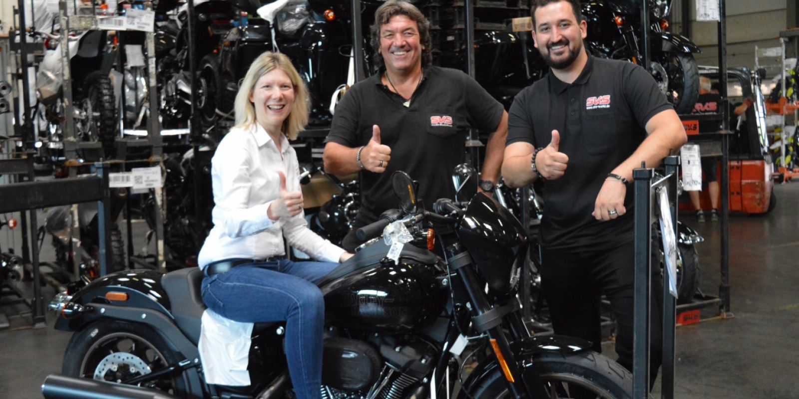 Einen Ausflug in eine andere Welt mit großem Potential dies zu mögen, erlebte die Landtagsabgeordnete Jenny Groß mit einem Besuch zu einer der größten, im Westerwald angesiedelten, Speditionen. SKS-World in Mogendorf ist europaweit tätig, zum Kerngeschäft zählt die Beförderung von Motorrädern, vorzugsweise der Firmen Harley Davidson und KTM. Zur Unternehmensgruppe zählen zusätzlich noch ein Logistik-Park und ein Reiseveranstalter, natürlich für Motorradreisen. Selbstverständlich durfte bei solch einem Termin das Probesitzen auf einer Harley, zumal es die Premiere war, nicht fehlen.