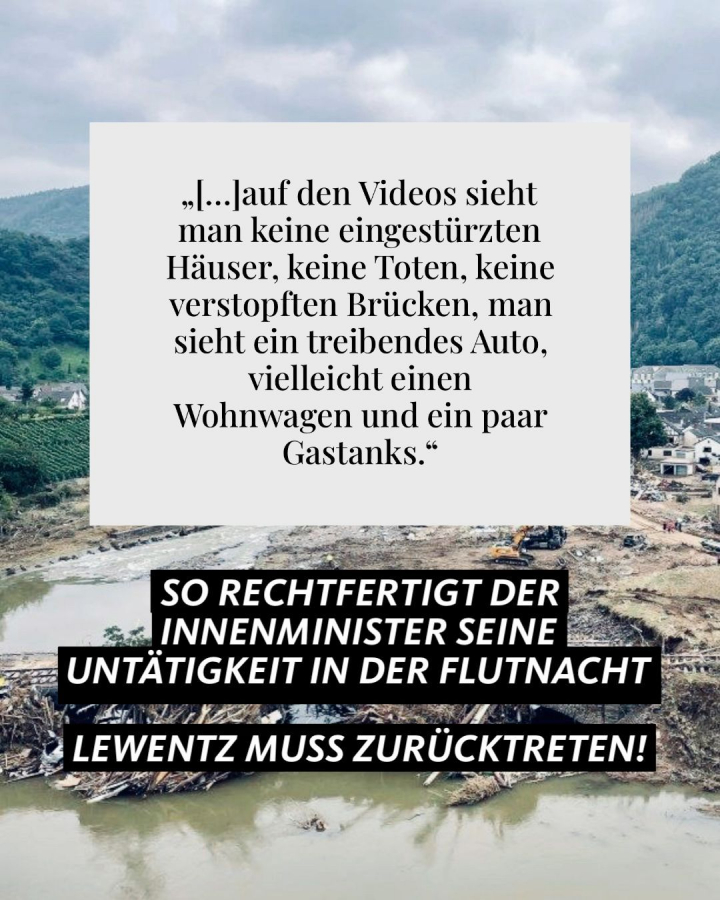 ‘Nur ein starkes Hochwasser‘ soll die Flut in der Nacht für ihn gewesen sein. Wer die Szenen aus den bekannt gewordenen Videos nicht als Handlungsaufforderung versteht, der ist fehl am Platz.