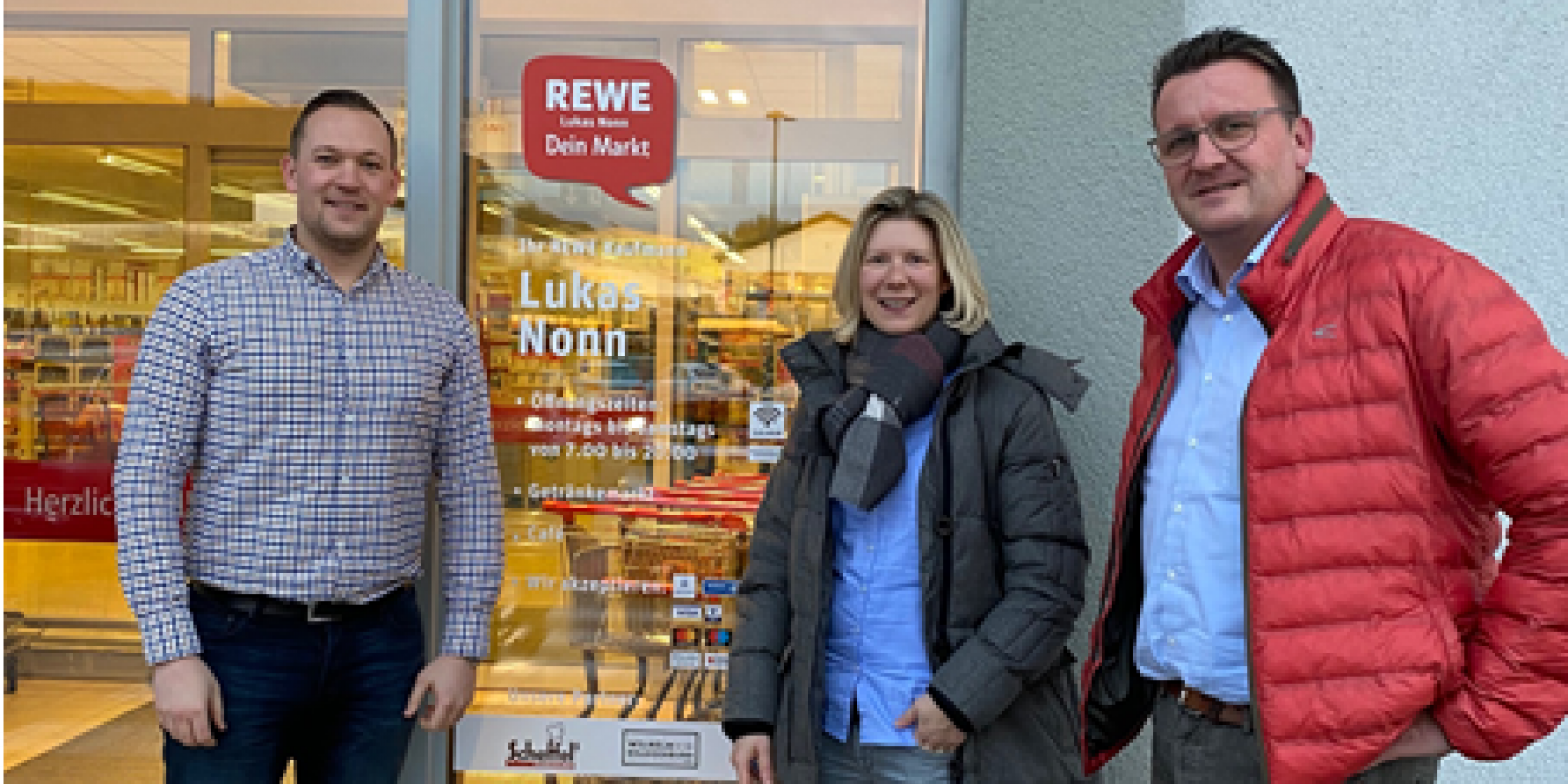 Gemeinsam mit Ortsbürgermeister Ulf Ludwig war die Westerwälder CDU-Landtagsabgeordete Jenny Groß kürzlich zu Gast beim neuen Rewe Geschäftsführer, Lukas Nonn, in Wallmerod: