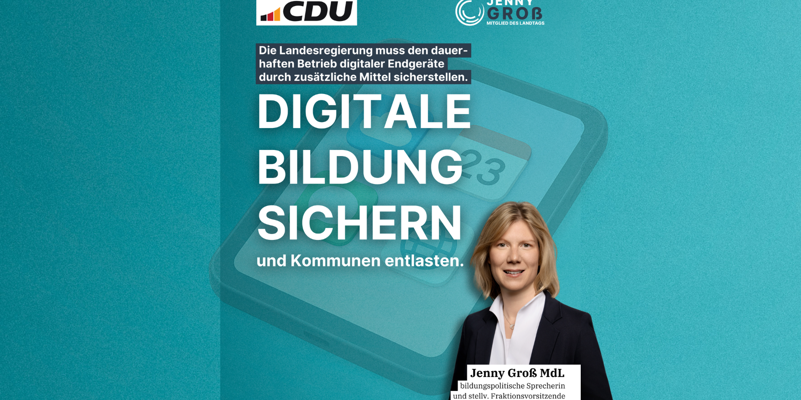 Das Land und die Kommunen streiten um die Kosten für Wartung, Administration und Verwaltung der Schul-Tablets. Dazu erklärt die bildungspolitische Sprecherin und die stellv. Vorsitzende der CDU-Landtagsfraktion, Jenny Groß, heute:
