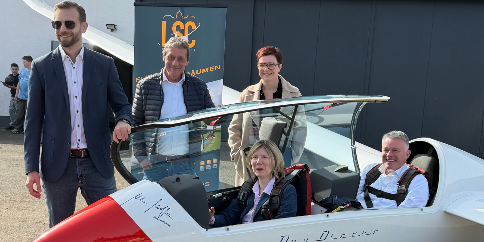 Auf Einladung des Luftsportclubs Westerwald (LSC) besuchte die Landtagsabgeordnete Jenny Groß den Verein, um sich über die aktuelle Situation und die Herausforderungen des Luftsports in der Region zu informieren. Begleitet wurde sie dabei vom CDU-Spitzenkandidaten für die Landtagswahl am 22. März 2026 und Kandidaten für das Amt des Ministerpräsidenten von Rheinland-Pfalz, Gordon Schnieder.